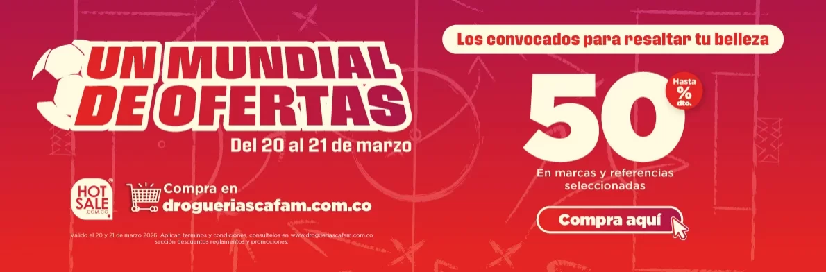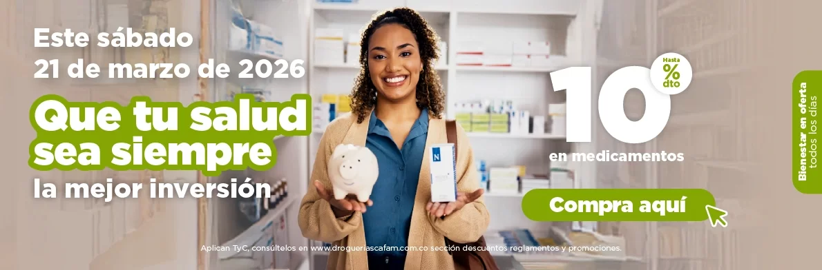 Bienvenido a Droguerías Cafam, aquí podrás encontrar productos de calidad, contamos con domicilios 24 horas en Bogotá. Tenemos presencia en ciudades como Barranquilla, Medellín, Cali, Cartagena, Pasto, Bucaramanga, Ibagué y más. En Droguerías Cafam encontrarás diferentes categorías como medicamentos, cuidado personal, cuidado de la piel, cuidado del bebé, Smart nutrition, ofertas del mes, otras categorías, vive consentido, afiliado eps, cliente azul. En Droguerías Cafam, cuidamos tu salud de forma responsable, por lo tanto, vendemos medicamentos y productos de calidad.