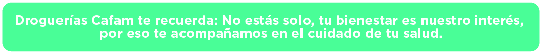 como en personas con depresión, los niveles de serotonina2 (conocida como la “hormona de la felicidad”) están por debajo de la media normal, por lo cual es importante aumentar los niveles de este neurotransmisor (sustancia capaz de transmitir señales o impulsos nerviosos, influyendo sobre el Sistema Nervioso) produce en nuestro cuerpo, una sensación de bienestar y de placer, que afecta nuestro estado de ánimo y puede contrarrestar los síntomas depresivos. Es por esto, que Droguerías Cafam te recuerda cómo prevenir o continuar el tratamiento de la depresión3,4: